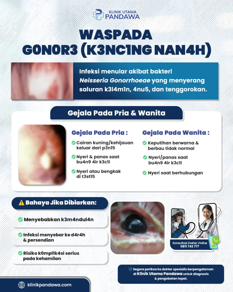 Jika Anda atau yang tersayang mengalami gejala gonore, segera periksakan ke Klinik Pandawa sekarang!