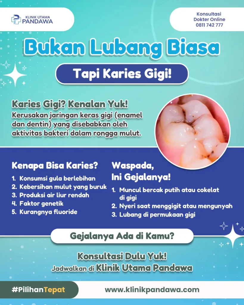 Jangan biarkan lubang kecil berkembang jadi masalah besar. Segera jadwalkan pemeriksaan gigimu di Klinik Utama Pandawa dan rasakan perbedaannya!